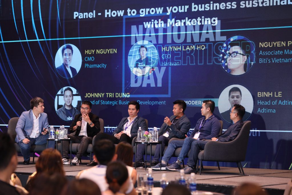 Với sự dẫn dắt của Ông Lê Bá An Bình – Giám Đốc Adtima, các đại diện từ những nhãn hàng lớn, bao gồm: Ông Huy Nguyễn – Giám Đốc Tiếp Thị Pharmacity, Ông Huỳnh Lâm Hồ – Giám Đốc Điều Hành Haravan, Ông Nguyễn Phú Cường – Giám Đốc Tiếp Thị Biti’s và Ông Johnny Trí Dũng – Giám Đốc Phát Triển Kinh Doanh Chiến Lược đã có một phiên thảo luận sôi nổi với chủ đề “Làm thế nào để phát triển doanh nghiệp của bạn bền vững với Marketing”. Các đại diện đã bàn về tầm quan trọng của Brand Branding (xây dựng thương hiệu) & cách duy trì sự cân bằng giữa Brand Building và Performance Marketing – hai thành phần quan trọng không thể tách rời của một thương hiệu.